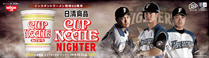 日清食品「カップヌードル」人気投票を実施中!先着で、本場のおいしいをお届け!「カップヌードル トムヤムクンヌードル」を300名様にプレゼント。また、前回好評だったインスタントラーメン発明60周年を記念した「誕生日だよ!チキンラーメンタワー」や、日清食品契約選手、中島卓也選手・鍵谷陽平選手・西川遥輝選手の等身大パネルなどのフォトスポットも同時開催いたします。