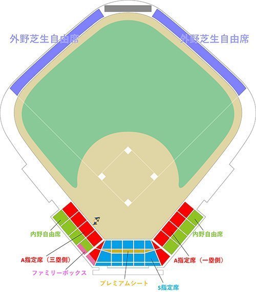 | レフト 外野指定席 | お と な | ¥1,800 | ¥1,300 |