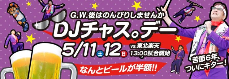 5月11日(土)・12日(日)のイースタン・リーグ公式戦、東北楽天ゴールデンイーグルス戦で開催される謎のイベント「DJチャス。デー」が間近に迫りました。