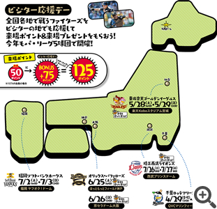 ファイターズオフィシャルファンクラブでは2016年シーズンも仙台から福岡までパ・リーグ5球場でビジター応援デーを開催いたします!!所定のブースにて2016ファンクラブ会員証と当日の観戦チケットをご提示いただくと、来場ポイント&来場ピンバッジをプレゼント!しかも来場ポイントは通常の来場ポイント+ボーナスポイント75ポイントをプレゼント!ご来場の際は2016ファンクラブ会員証を忘れずに!