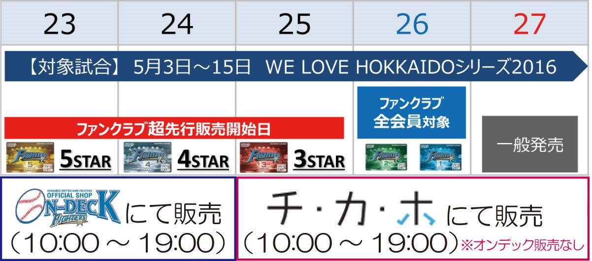 〈WE LOVE HOKKAIDOシリーズ満喫チケット〉・〈限定ユニフォーム付チケット〉・〈少年少女よ大志を抱け!こどもの日ワンコインチケット〉・〈安心してください、トークショーやりますよ!チケット〉の販売概要