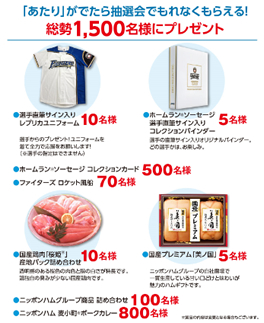 - 1.「ニッポンハムグループ☆サンクスマッチ限定デザイン ホームラン(R)ソーセージプレミアムカード」(ご来場25,000名様)