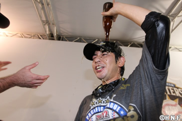 2012年リーグ優勝で自らビールを浴びる
