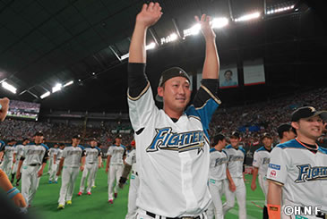 試合後の最終戦セレモニーでは大野選手会長が「先日の台風で北海道は大きな被害を受け、復興にはまだ時間がかかります。北海道が一つになり助け合っていきましょう。一緒に力を合わせて北海道を日本一にしましょう」と挨拶。栗山監督も「(日本一を逃した)4年前の忘れ物をみんなで取りにいきます。元気と勇気を与えられる試合をして、必ず日本一になります」と改めて決意を新たに誓いました。