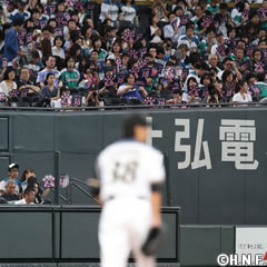 武田勝投手は2015年10月4日(土)マリーンズ戦(QVCマリン)以来、先発で今シーズン初めて1軍マウンドに上がりました。大歓声が耳に届くとポーカーフェイスが崩れて涙をこらえながらの投球。先頭打者の清田選手を2球で追い込むと、最後は127キロのストレートで空振り三振を奪い、通算244試合目の登板を最高の形で締めくくり。宮西尚生投手、谷元圭介投手ら出場選手登録を外れた後輩たちは、バックネット裏のスコアラー席で「11年間お疲れさまでした。みんなで勝さんのために優勝してやったぞ!!」と手書きのメッセージを掲げ、ベンチも総立ちで万感の表情を浮かべる背番号38を迎えました。