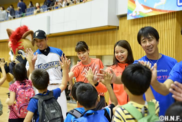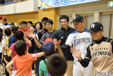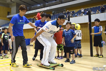 北海道日本ハムファイターズは10月2日(日)、札幌市の北海道立総合体育センター(北海きたえーる)で稲葉篤紀スポーツ・コミュニティ・オフィサー(SCO)が発起人を務める「北海道スポーツコンベンション」を初めて開催しました。陸上、ノルディックスキージャンプ、カーリング、サッカー、バスケット、野球の6競技から現役アスリートを含む講師陣が一堂に会し、小学生360人を対象に体験教室を開いてスポーツの楽しさを体感していただきました。