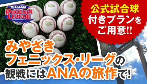 10月3日(月)~10月24日(月)まで開催中の《みやざきフェニックス・リーグ2016》では、ANAセールス株式会社と宮崎市観光協会のタッグによる観戦専用プランが販売中です。当プランにお申込みいただくと実際の試合で使用した公式ボールをお一人様おひとつプレゼント。この機会に、国内ダイナミックパッケージ「旅作」で、若きファイターズの現地での応援をお楽しみください。《みやざきフェニックス・リーグ2016》には、NPB12球団に加え、韓国(KBO)から斗山ベアーズ、ハンファイーグルス、LGツインズの3球団、四国アイランドリーグplus選抜チームの全16チームが参加、ファイターズは22日間で18試合を行います。