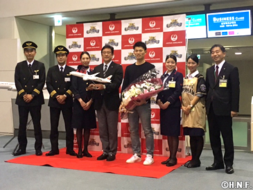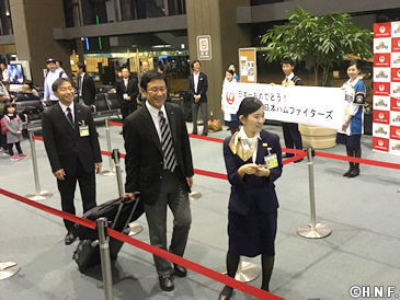 4年ぶりのリーグ優勝、10年ぶりの日本一に輝いた北海道日本ハムファイターズが12月12日(月)、米国・ハワイ州に向けて優勝旅行に出発しました。監督、コーチ、選手、球団スタッフとその家族総勢約150名が、最大11.5ゲーム差を逆転した激闘の疲れを癒すべくオアフ島のホノルルに向かいます。2009年、2012年と続けてハワイへのV旅行。栗山英樹監督は「みんなが喜んでくれれば、選手の家族が喜んでくれれば嬉しいです」と成田空港で語りました。札幌市に比べて20度近く気温の高い南国ハワイで4泊し、観光やゴルフ、マリンスポーツを楽しんだ一行は12月17日(土)に帰国予定です。