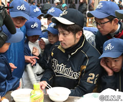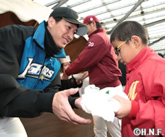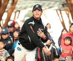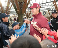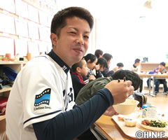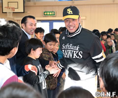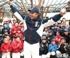 - 「予想以上の被害。ここまで大きいとは知らなかった自分が恥ずかしい気持ち。元気を与えに来たら、逆に元気をもらって、楽しかった。直に触れ合った僕たち選手が活躍すれば、子供達も喜んでくれるはず。来季シーズン通して活躍して、テレビや新聞を通して見てもらえるように頑張りたい」