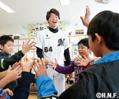 - 「子供達の元気な姿が見れてうれしかった。今回のように触れ合える時間がもっと長く続けばいいなと思いながら過ごした。現状に対して前向きな皆さんと接して、自分が野球で悩んでいることなど、ちっぽけなことだと思える。野球を通して皆さんが勇気付けられたと感じてもらえるように、これからも頑張りたい」