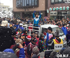 北海道日本ハムファイターズの栗山英樹監督が12月23日(金・祝)、自宅のある北海道栗山町が主催する優勝パレードに参加しました。軽トラックの荷台に乗った栗山監督は、激しい雪が降る中、ジャージ姿で5,000人の町民やファンの皆様の声援に応えました。