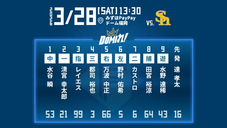 ファーム2026/03/13 (金)鎌スタ☆開幕シリーズ 最新情報 -