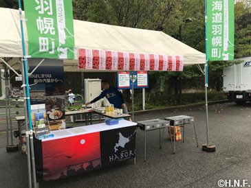 羽幌町は、2018年9月22日(土)~24日(月・祝)に、鎌ケ谷スタジアムにて開催された「大北海道祭」に出展し、町PRを実施しました。甘えびの炭火焼きを販売し、甘えび26キロの予定数量を完売しました。何度も購入されるリピーターやSNSでの投稿も確認でき、羽幌町を知ってもらうきっかけとなりました。