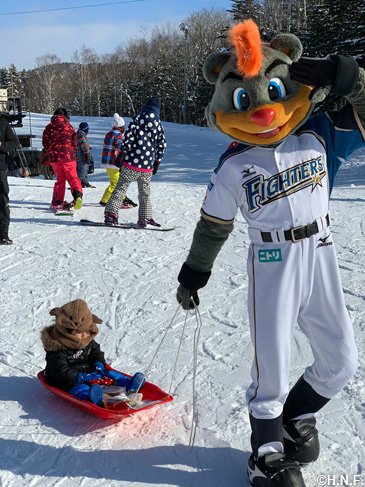 羽幌町は、1月27日(日)に、20周年を迎えた羽幌町民スキー場にて、びゅーまつりを開催しました。来場した球団マスコットのB☆Bは、記録会の表彰やもちまきに参加するなど、約500名の来場者とふれ合いました。