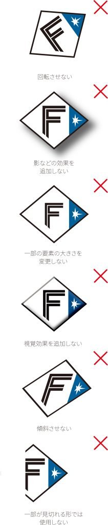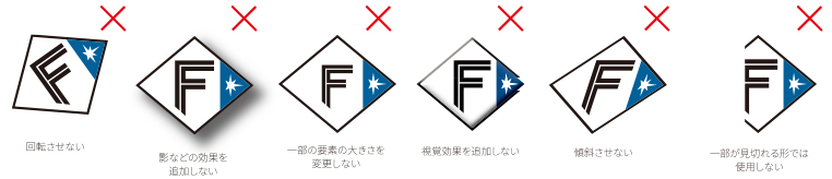 プライマリーマークやその他マークは、原則としていかなる改変も認められません。以下に例示されるものをはじめ、本項の規定から逸脱した使用方法は認められません。