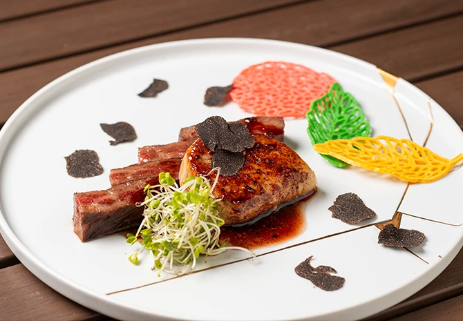 バーカウンターや落ち着いたイートインスペースを備え、北海道食材を軸とした料理とソムリエ厳選のワイン・ウイスキーをご提供します。