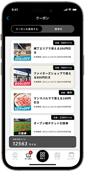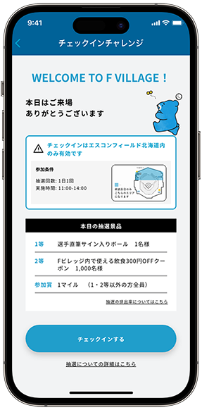 「F里程」是一項新服務,用戶購買北海道日本火腿鬥士隊比賽門票和周邊商品可以獲得里程,在ES CON FIELD HOKKAIDO的餐廳消費和在F VILLAGE參加活動也能獲得里程。