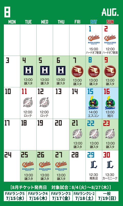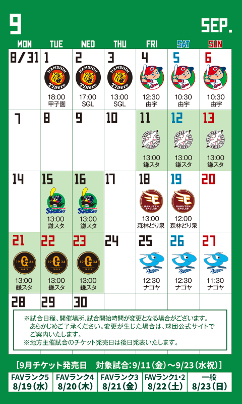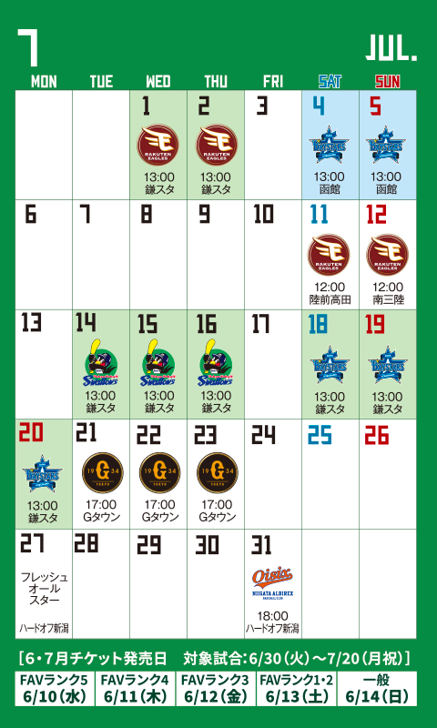 - 土日祝の試合開催日