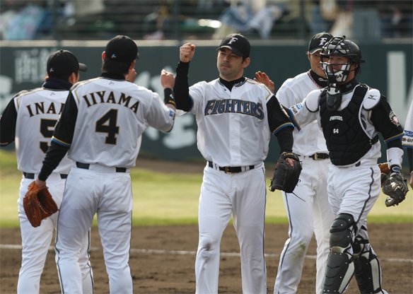 投手 宮西 投手交代 宮西⇒武田久 守備交代 遊撃⇒飯山 |
