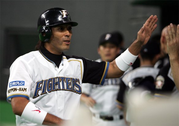 2ランHRを放ちFGからマスコットを贈られる稲葉選手