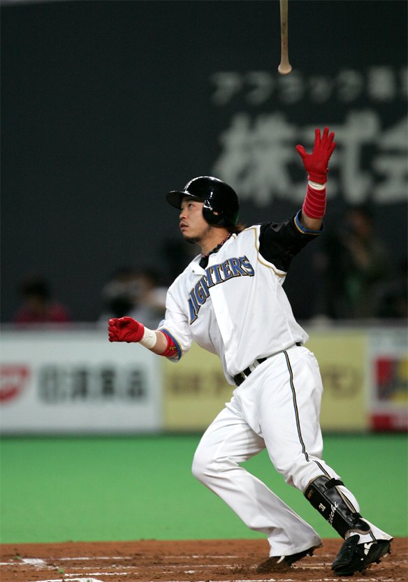 8番 鶴岡 一犠 3塁ランナー糸井生還 3-1