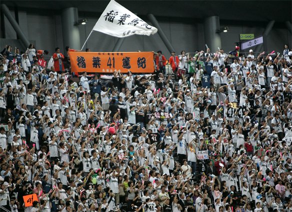 7回、代打稲葉が告げられるとスタンドの応援も最高潮に