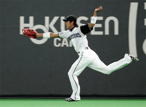 4回、右中間を抜けそうな打球をナイスキャッチ