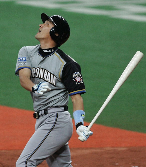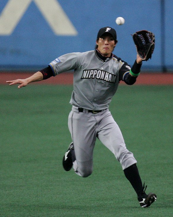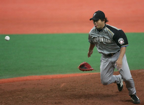 9番 金子誠 投ゴ 3塁ランナー坪井、三本間でタッチアウト その間に1塁ランナーボッツは3塁へ バッターランナー金子誠は2塁へ |