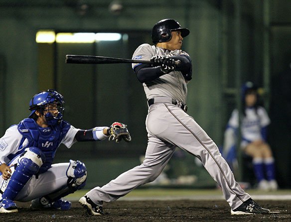 2番 栗山 中安 3塁ランナー片岡生還 7-0