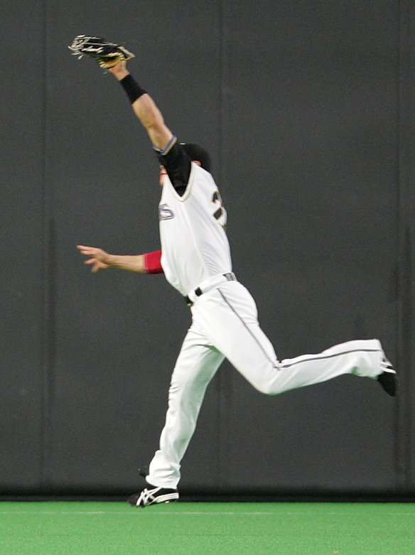 9番 金子誠 中安 3塁ランナー二岡、2塁ランナー小谷野生還 6-4