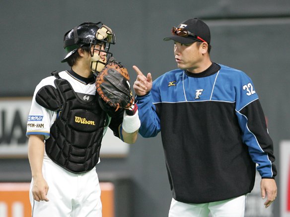 鶴岡選手にアドバイスする中嶋コーチ