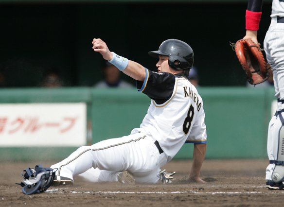 1番 田中賢 右中三 2塁ランナー鶴岡、3塁ランナー金子誠生還 4-2