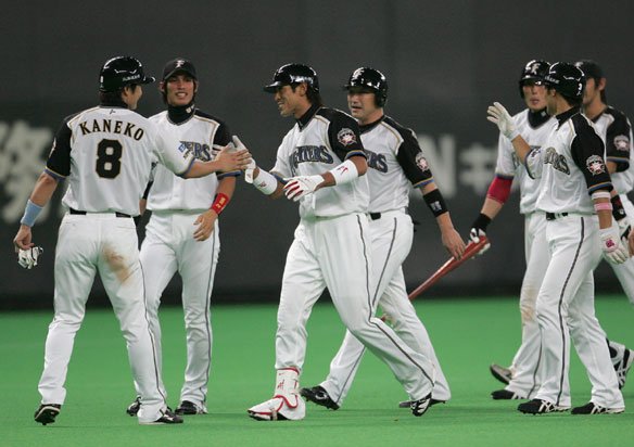 2番 糸井 糸井の打席でワイルドピッチ、3塁ランナー中嶋がサヨナラのホームイン 7x-6