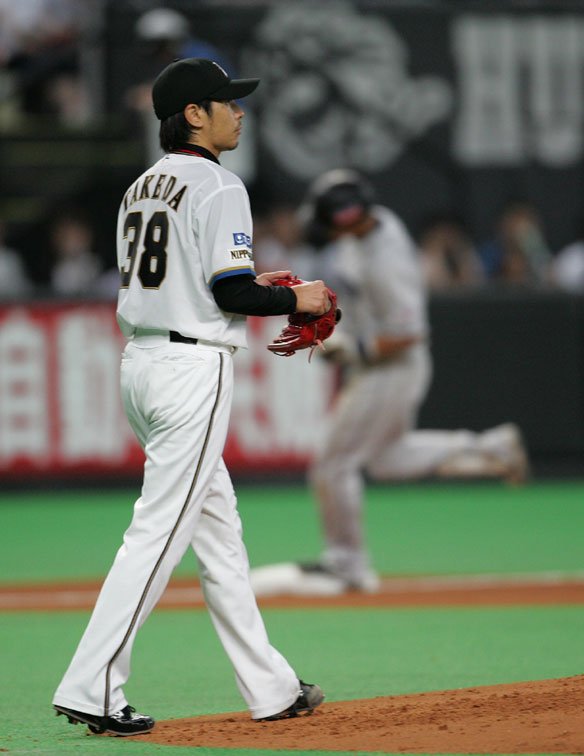 投手 武田勝 5番 G.G.佐藤 空三振 |