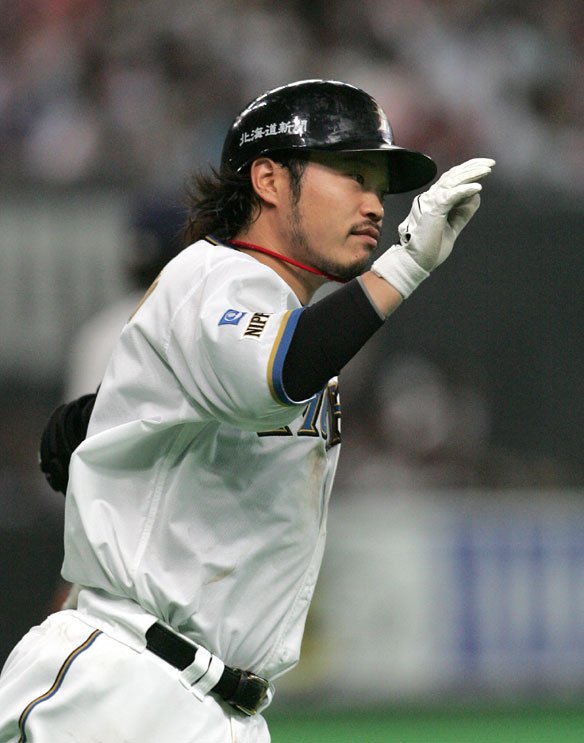 5番 G.G.佐藤 左中二 1塁ランナー中村生還 0-4 バッターランナーG.G.佐藤は3塁タッチアウト