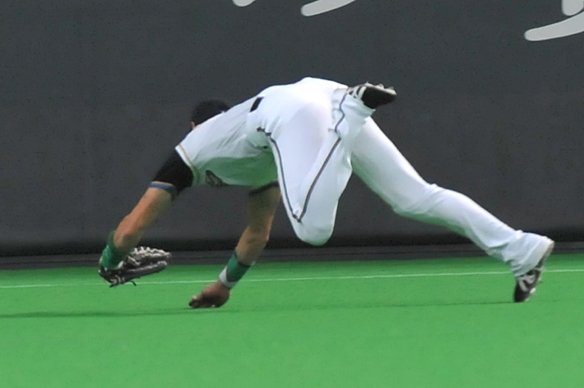8番 草野 左安 3塁ランナーセギノール生還 1塁ランナーリンデンは3塁へ 1-3