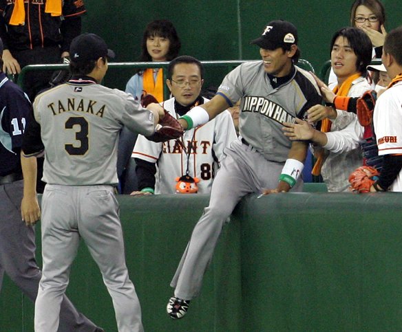 エキサイトシートに飛び込む稲葉選手のファイト溢れるプレー