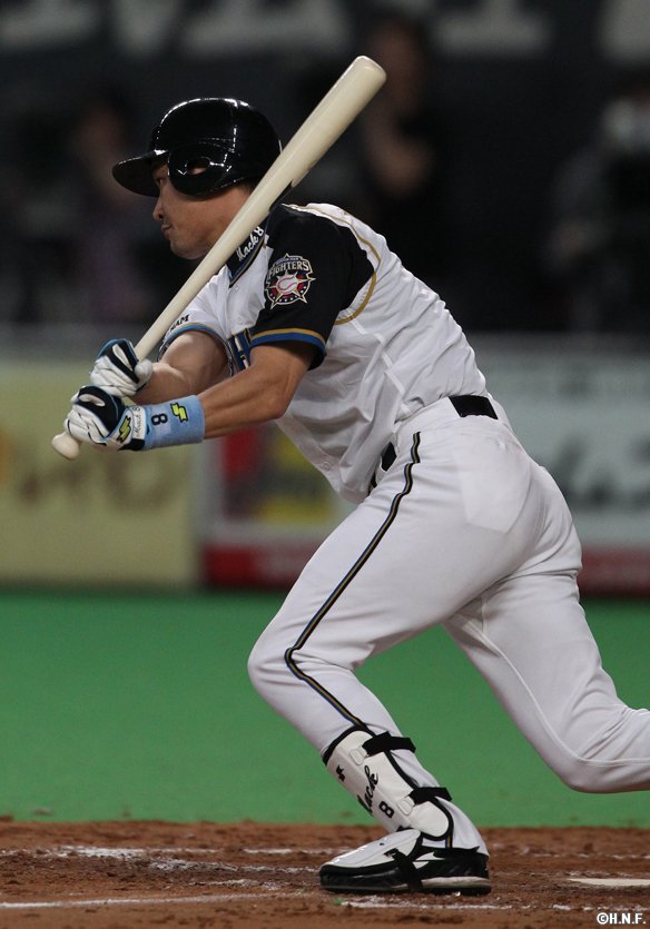 田中賢選手のセンター前ヒットでチャンスを広げる