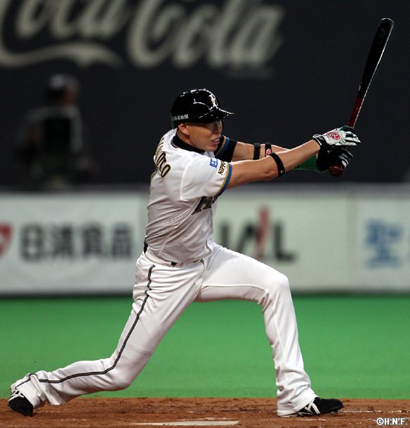 5番 小谷野 左翼二 3塁ランナー田中賢、2塁ランナー森本生還 2-0