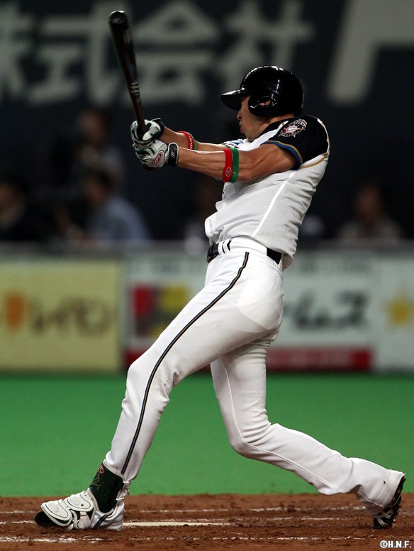 6番 二岡 左翼二 3塁ランナー田中賢、2塁ランナー稲葉、1塁ランナー糸井それぞれ生還 3-0