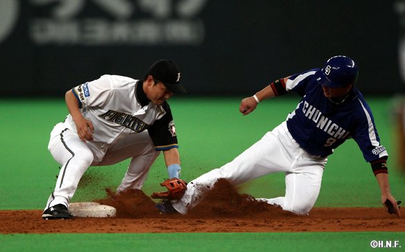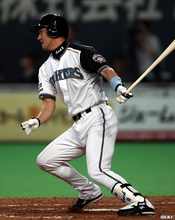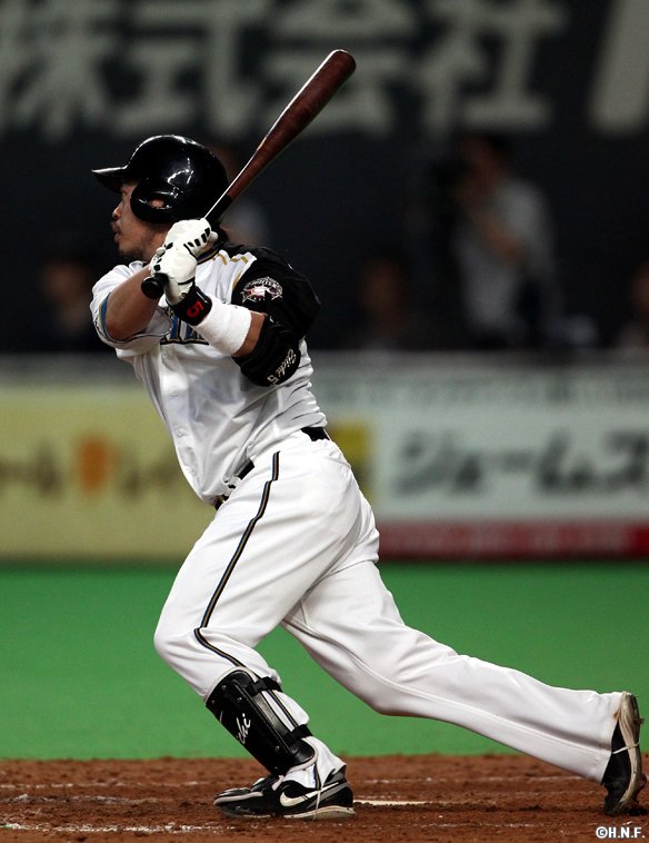 2番 森本 中飛 2塁ランナー金子誠タッチアップで3塁へ |