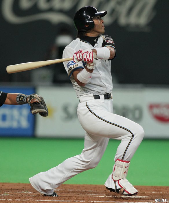 4番 小谷野 左越二 3塁ランナー金子誠、2塁ランナー田中賢、1塁ランナー森本生還 10-4