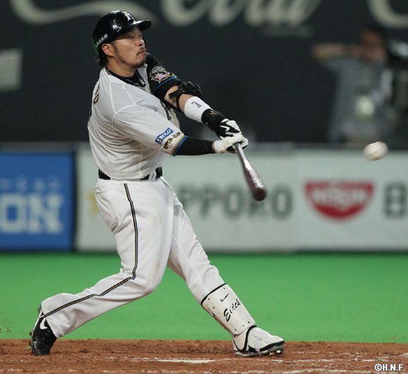 1番 田中賢 右翼二 2塁ランナー金子誠生還 10-2