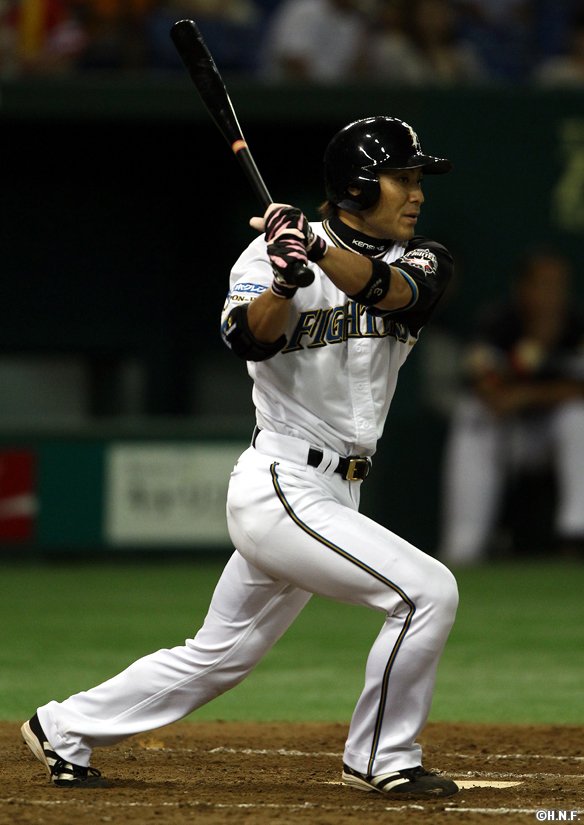 先制のセンター前タイムリーヒットを放つ糸井選手