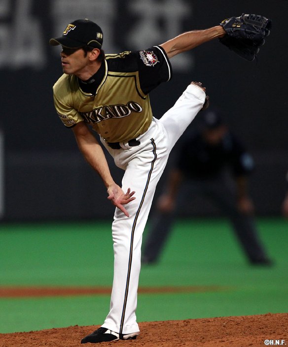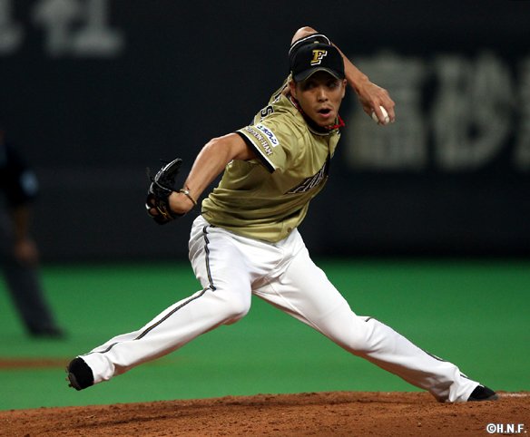 | ノーアウト | 投手 宮西 投手交代 宮西⇒武田久 守備交代 捕手⇒鶴岡 一塁⇒小谷野 三塁⇒飯山 |