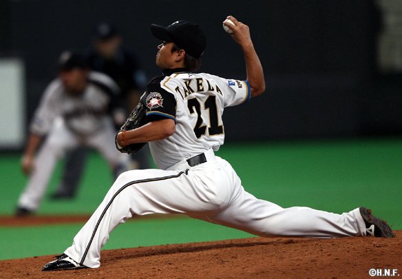 竹原の打席で1塁ランナーサブロー牽制刺 |