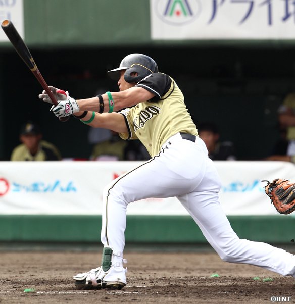右中間適時2BHを放つ森本選手