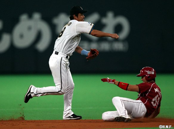 1番 田中賢 一ゴ 2塁フォースアウト |