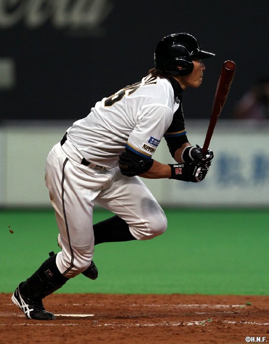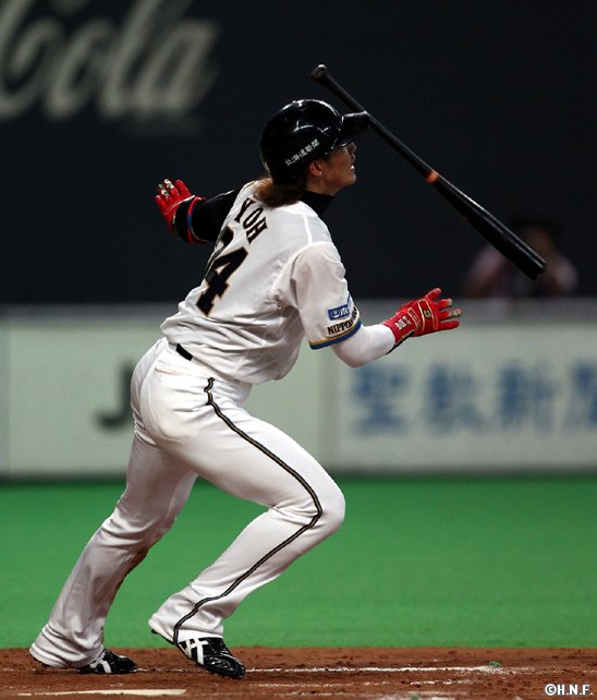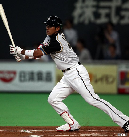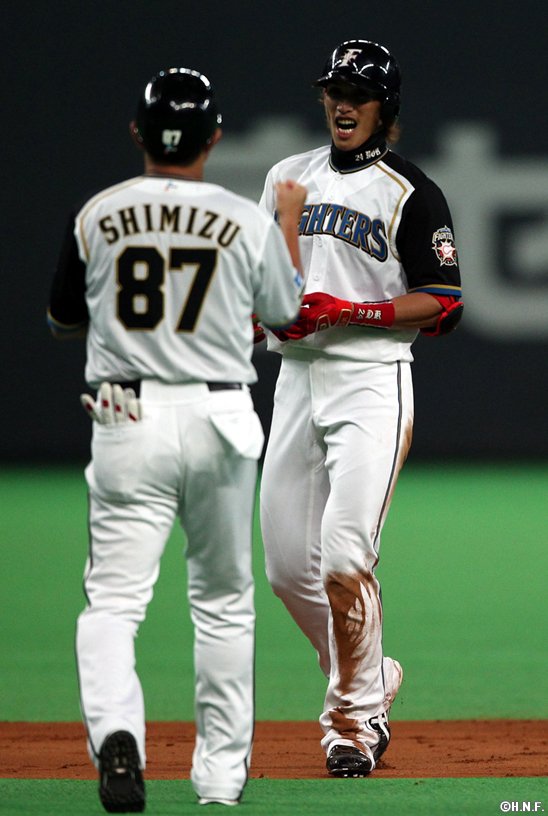 2番 陽 左中三 2塁ランナー大野、1塁ランナー田中賢それぞれ生還 7-2