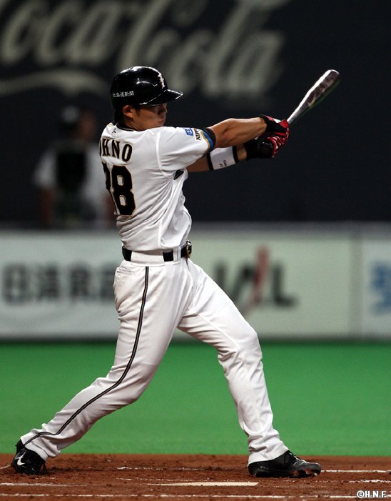 8番 大野 左翼二 1塁ランナー鵜久森、一気に生還 2-0